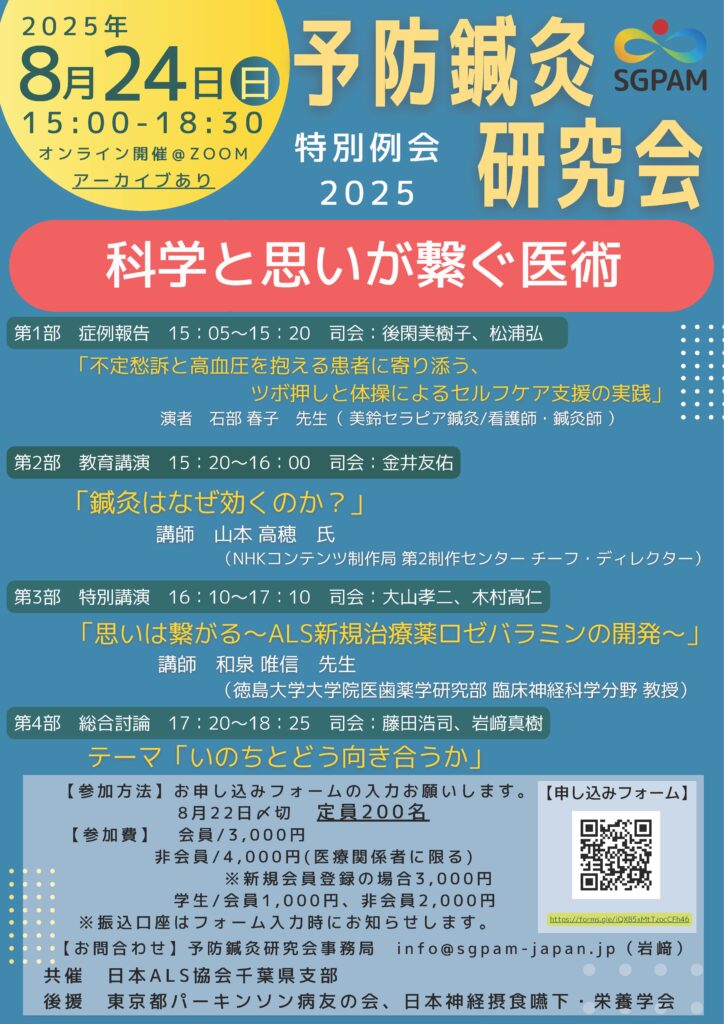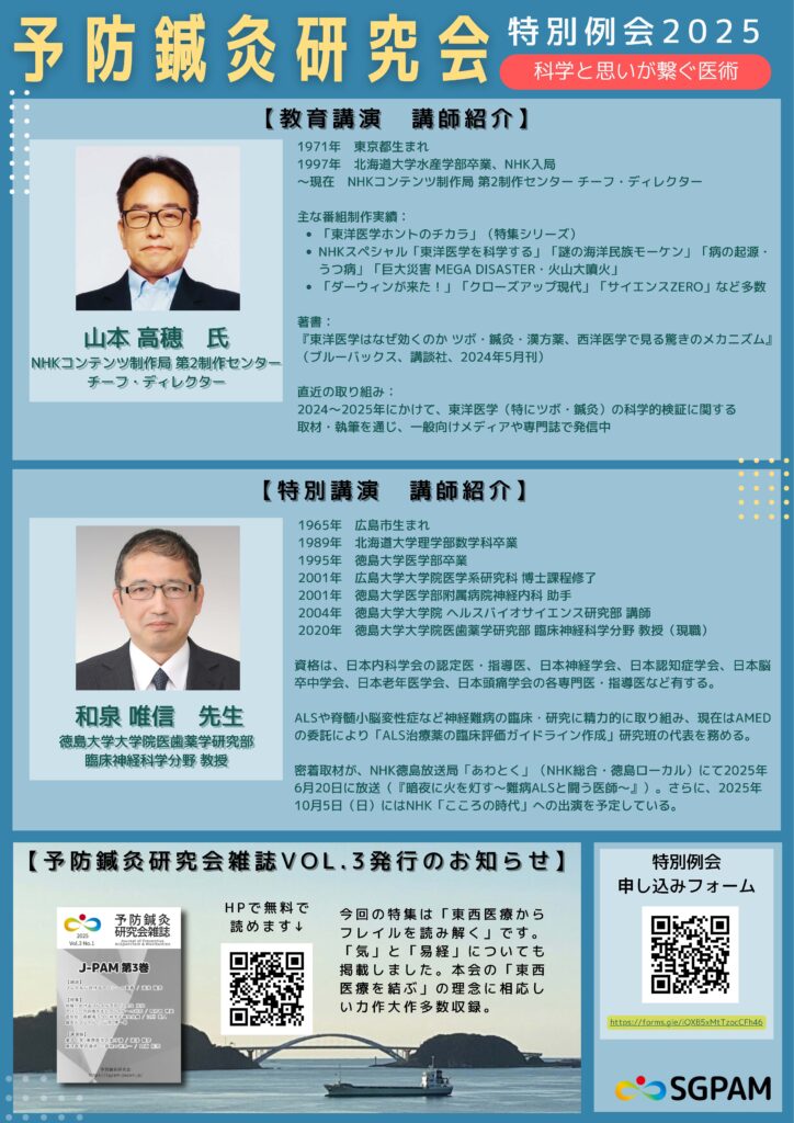 岩﨑真樹先生がが事務局長を務める予防鍼灸研究会が開催する「特別例会2025」のご案内です。