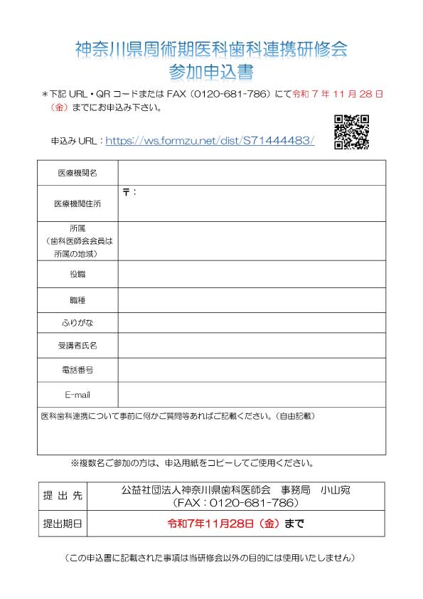 \参加費無料/神奈川県周術期医科歯科連携研修会(開催:12/21 申込期限12/12)